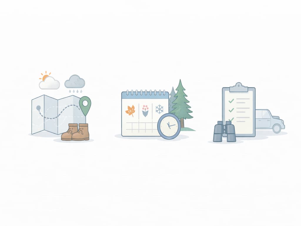 Check current conditions before departure. Weather changes rapidly in mountainous areas. Trail closures and facility availability vary throughout the year.